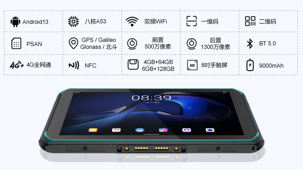 產品描述:ZKC DT8801 8寸工業級智能平板,基于Andriod 13操作系統, 采用八核處理器,集成條碼掃描、1300W攝像頭拍照錄像、NFC讀寫等功能,廣泛應用于智慧工業、倉儲物流、建筑工程、能源電力、無人機、汽車服務、航空、車載、勘探、醫療、金融、教育、智能機器設備等領域。